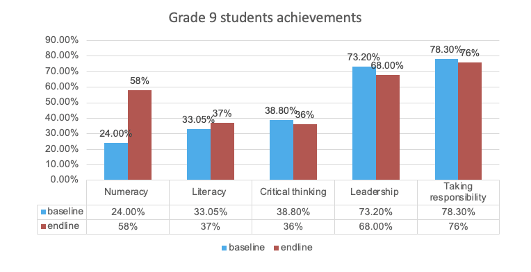 Notably, students’ mathematical literacy improved significantly. Fourth-grade students increased their mathematics knowledge from 42.2% to 76%, marking a rise of 33.8%. Similarly, ninth-grade students demonstrated an improvement from 24% to 58%, an increase of 34%. Alongside this, their research skills were honed, and their capacity for independent analysis was strengthened.