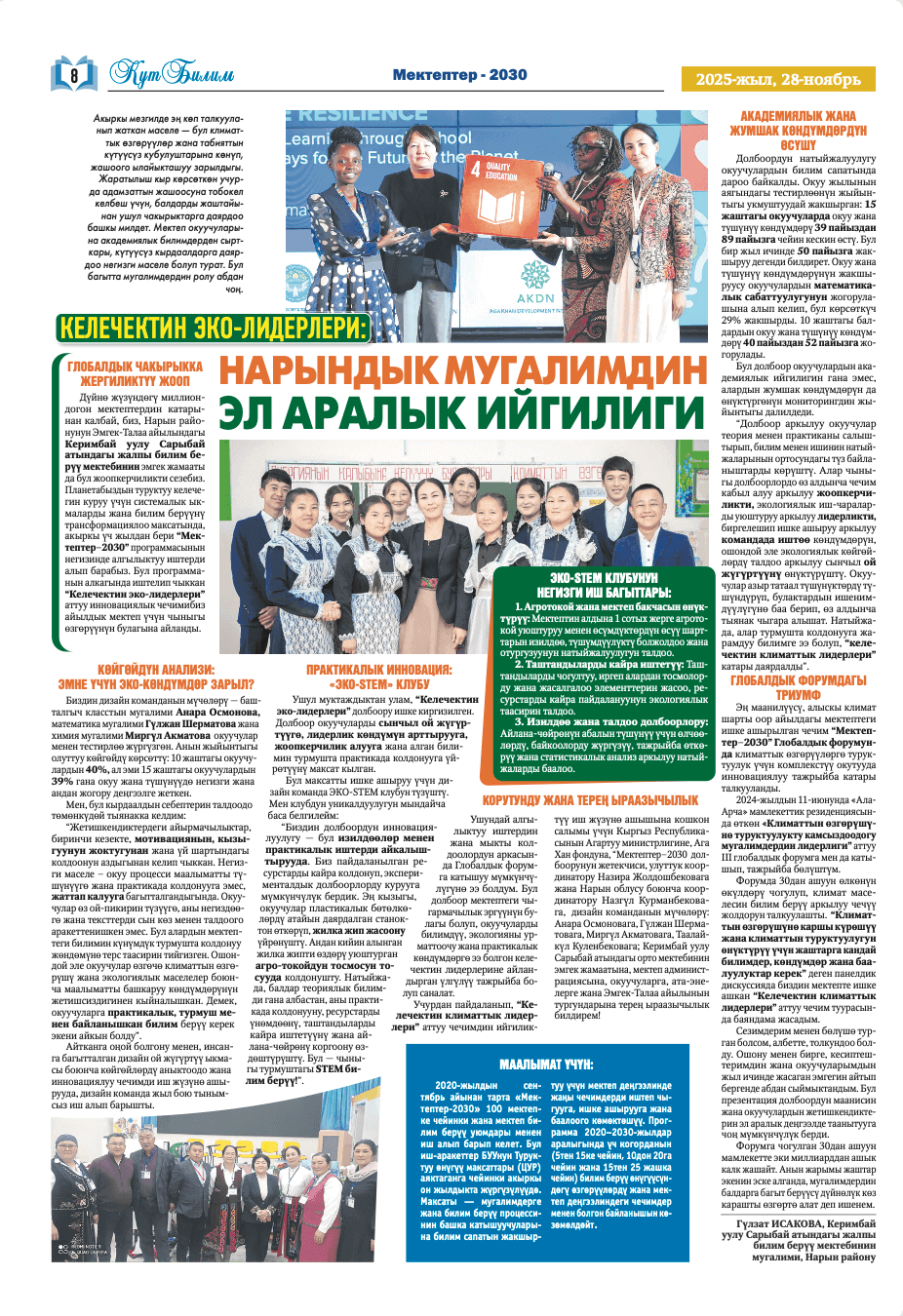 Schools2030 Kyrgyzstan has enjoyed considerable attention from the national media, including these pieces featured in the prominent Kut Bilim publication.